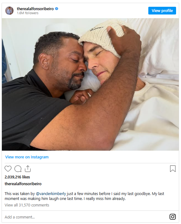 Alfonso wrote in the caption, “I’m so broken right now with the passing of my friend @vanderjames today. He was my true friend brother and life guide. I was with him through this horrible journey to beat cancer.”