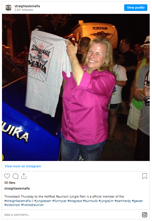 “Well, sex sells,” Pam told Competition Plus. “You see it on the TV all the time, but back in the ’70s, Jungle and I decided together that this would be worth a shot, so that’s what we did, and it didn’t seem to hurt his reputation at all. And he had more pictures taken of his car as long as I was standing next to it than anybody else.”