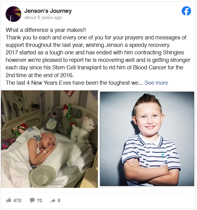 This was his 2nd cancer diagnosis – when Jenson was only four, he had lymphoma and leukaemia – and since two rounds of chemotherapy failed, his parents were losing hope that their boy would survive.