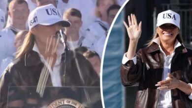 Melania Trump mocked over awkward 2-word greeting to Navy sailors in rare speech
