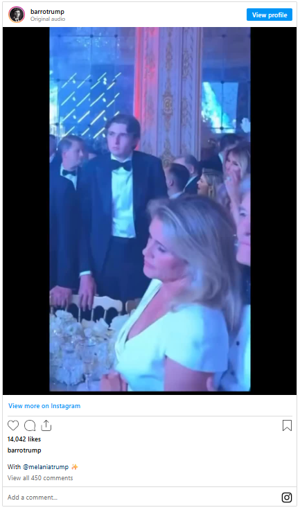 Barron tried to dance at first but quickly stopped, awkwardly avoiding interaction with others. He stayed close to the FLOTUS, who appeared to remain by his side the entire time.
