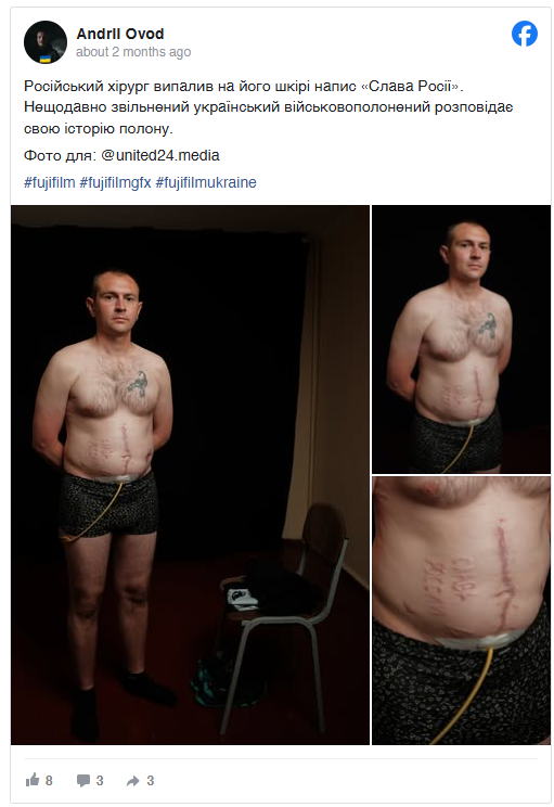 After two days in intensive care, the prisoner lifted his head to check his injuries and saw that the words “Glory to Russia” had been burned into his stomach by a surgeon who used a medical cauterizing tool to mutilate him.