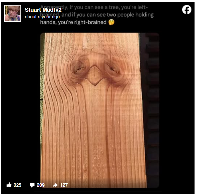 Our brains are wired to interpret visual information that might puzzle us momentarily based on past experiences, personal values, and even our current emotional state. While some people focus on the structure and form (like the tree), others are drawn to human connections (like the two people). Neither is better or worse – it’s simply a reflection of how your mind works.
